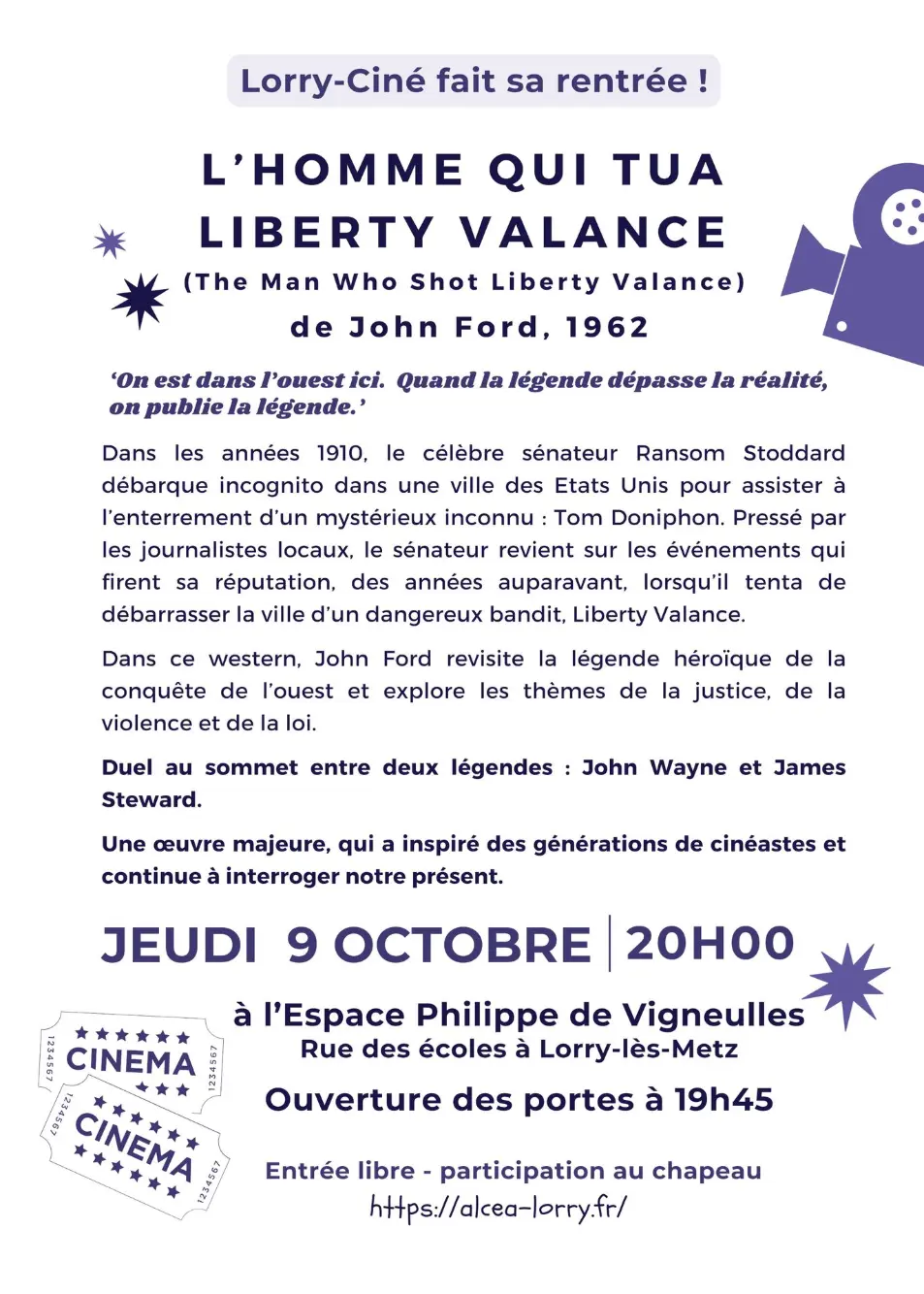 Séance de cinéma : projection du film "L'homme qui tua Liberty Valance" en Version Originale sous-titrée